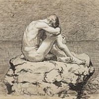 (εικαστική δημιουργία με χρήση μελάνης και gouache τέμπερας σε χαρτί με τίτλο «Loneliness» του Hans Thoma)
